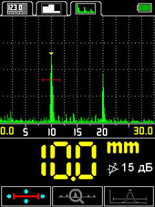 • Режим В-Скан для отображения профиля исследуемого объекта контроля на дисплее прибора.