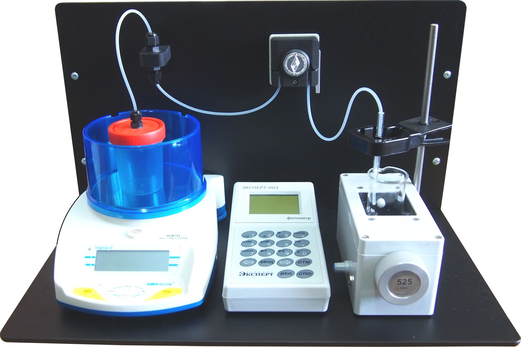 Комплект построен на базе фотометра «Эксперт-003», при помощи которого в ходе титрования измеряется оптическая плотность раствора.