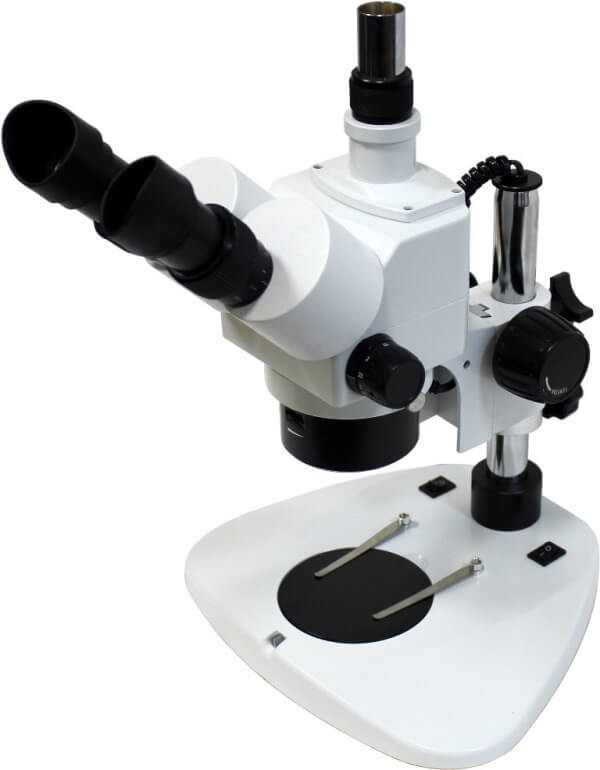Микроскоп стереоскопический МБС-100Т Биолаб (тринокулярный, стереоскопический) Микроскоп стереоскопический МБС-100Т Биолаб высококачественный стереоскопический микроскоп с непрерывным (ZOOM) увеличением. Стереоскопические микроскопы имеют два независимых объектива, расположенных в корпусе оптической головки, что позволяет глазам пользователя наблюдать одну и ту же область предмета под разными углами, что и обеспечивает стереоскопический эффект. В отличие от плоскопольных биологических микроскопов, стереоскопический микроскоп позволяет «почувствовать» объем предмета, например, оценить или сравнить высоту отдельных элементов предмета. Наличие стереоэффекта определяет области применения микроскопа: контроль на производстве (электроника, приборостроение), изучение минералов, препарибование в биологии и пр. Особенности: — Непрерывное увеличение в диапазоне 7,5-50х (с окулярами 10х) или 15-100х (с окулярами 20х), позволяет оптимально подобрать нужное увеличение или поле зрение;- Микроскоп «держит» фокус при изменении увеличения;- Кольцевой осветитель обеспечивает безтеневое освещение предмета;- Большой рабочий отрезок — 113мм;- Тринокулярная оптическая головка с независимым оптическим каналом для установки видеоокуляра;- Высокий штатив, который позволит располагать большие предметы;- Возможность работы в проходящем свете для работы с прозрачными объектами.