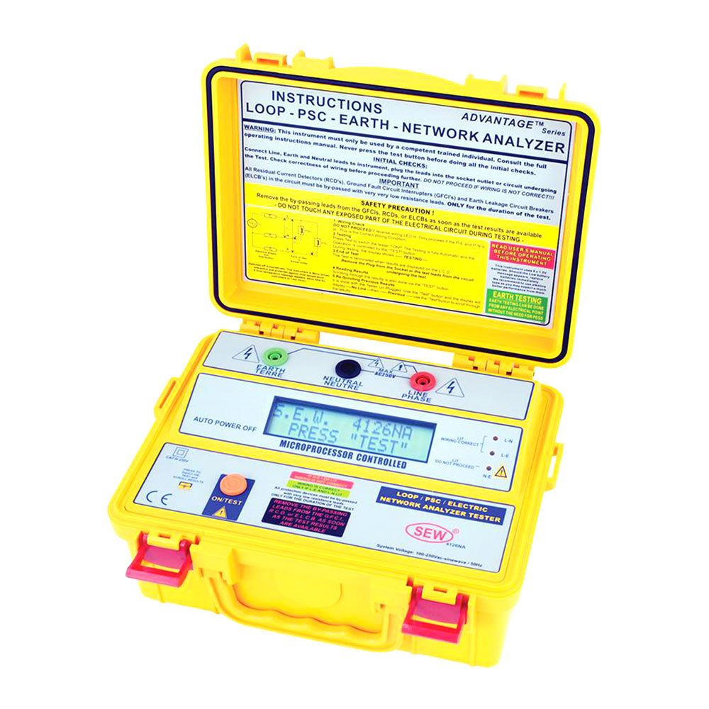 Измеритель параметров электрических сетей 4126 NA выполнен в усиленном корпусе измененного типоразмера (ударо-, пыле-, и влагозащищенное исполнение) и предназначен для проверки надежности электрической проводки в однофазных сетях и системах с небольшим энергопотреблением (макс. ток нагрузки 10 А). Для информативного отображения результатов измерений прибор имеет увеличенный ЖК-индикатор.