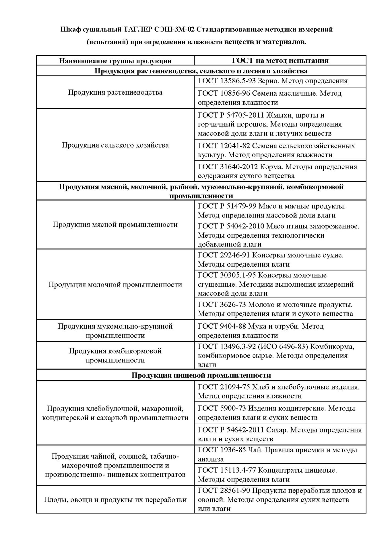 Шкаф сушильный ТАГЛЕР СЭШ-3М-02 Стандартизованные методики измерений
