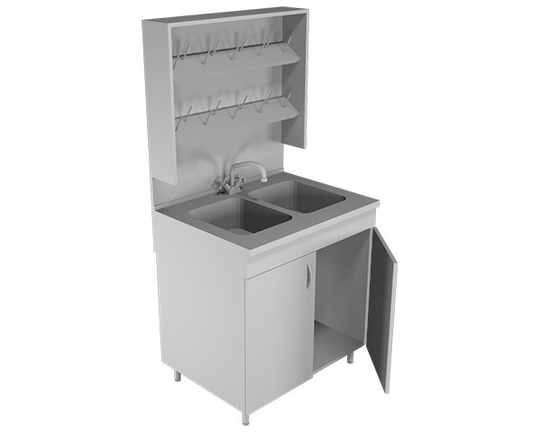 Стол-мойка лабораторная НВ-1000 МД В стандартную комплектацию стола-мойки лабораторной НВ-1000 МД входит: пластиковая сушилка на 16 мест двойная раковина из полипропилена (глубина 29 см) смеситель с гибкими подводками 300 мм сифон регулируемые по высоте опоры. Габаритные размеры 1000*600*1650 В стандартном исполнении мы предлагаем столы-мойки лабораторные серого цвета, по согласованию с заказчиком возможно изменение цвета на белый, без увеличения стоимости. По дополнительному заказу — раковина из керамики, раковина эпоксидного керамзита DURCON.