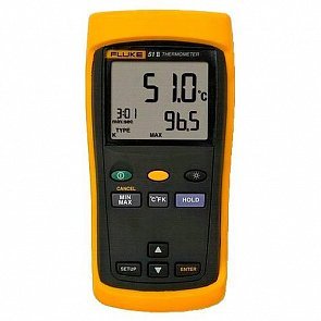 Fluke 51 II служит для контактного измерений температуры материалов различных видов. Данное устройство применяют во время исследований в лабораториях, оно будет полезно и для определения температуры в промышленных печах. Пределы измерений аппарата зависят от типа используемой термопары. Аппарат совместим с термопарами K, E, T, и J-типов. Прибор обладает высокой достоверностью измерений: его погрешность лежит в диапазоне 0,05 до 0,3% в зависимости от типа детектора.