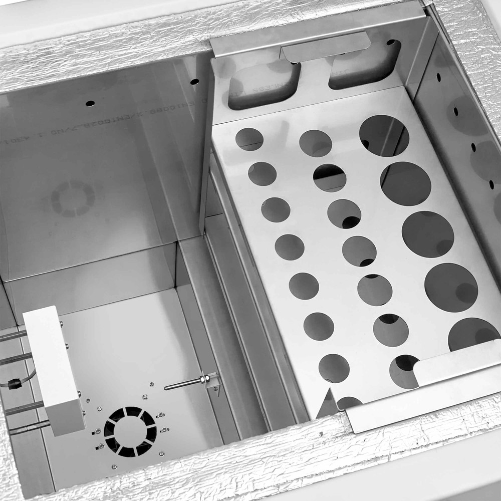 Камера объемом 80 литров с корзиной для размещения лабораторной посуды с пробами.