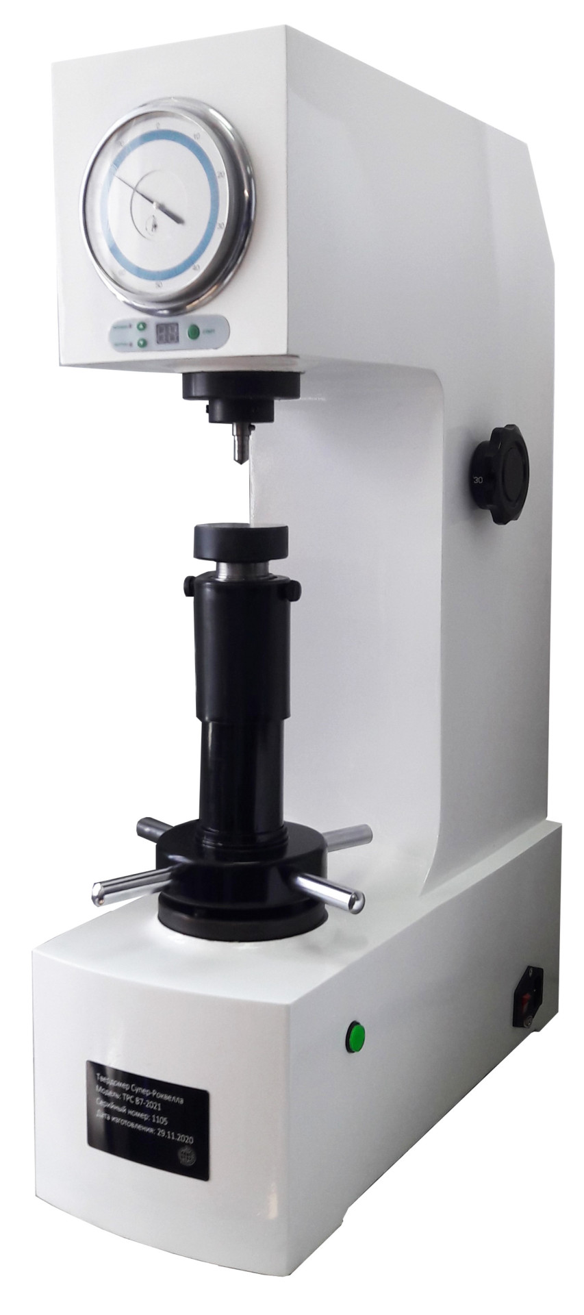 ТРС – самая простая модель в линейке приборов по Супер-Роквеллу: аналоговый стационарный измеритель твёрдости по методу Роквелла — имеет электромеханическую систему нагружения благодаря установленному электродвигателю, что обеспечивает плавное приложение и снятие основной нагрузки (условная расшифровка Твердомер Роквелла-Супер).