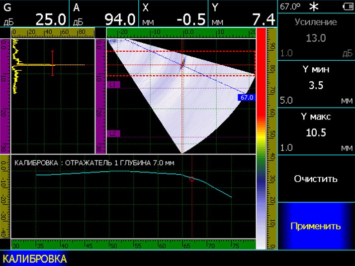 Универсальный режим калибровки УРЧ позволяет выровнять чувствительность по 10 любым отражателям, указанным пользователем.
