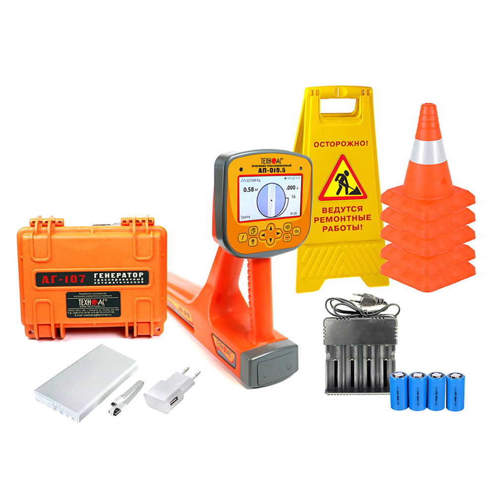 Комплект оснащен новейшим компактным автономным генератором АГ-107 со встроенными элементами питания, дисплеем и встроенной индукционной антенной, для трассировки коммуникации бесконтактным способом.