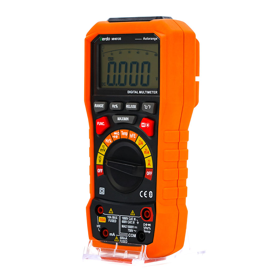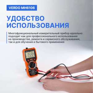 Мультиметр VERDO MH6135 – это многофункциональный ручной цифровой мультиметр с функцией отображения истинного среднеквадратичного значения (TrueRMS), большим многострочным жидкокристаллическим дисплеем с аналоговой шкалой, что облегчает считывание показаний. Передача измеренных значений величин в ПО обработки. Этот многофункциональный измерительный прибор идеально подходит как для профессионального использования на производстве, ремонта и сервисного обслуживания, так и для обучения и бытового применения.